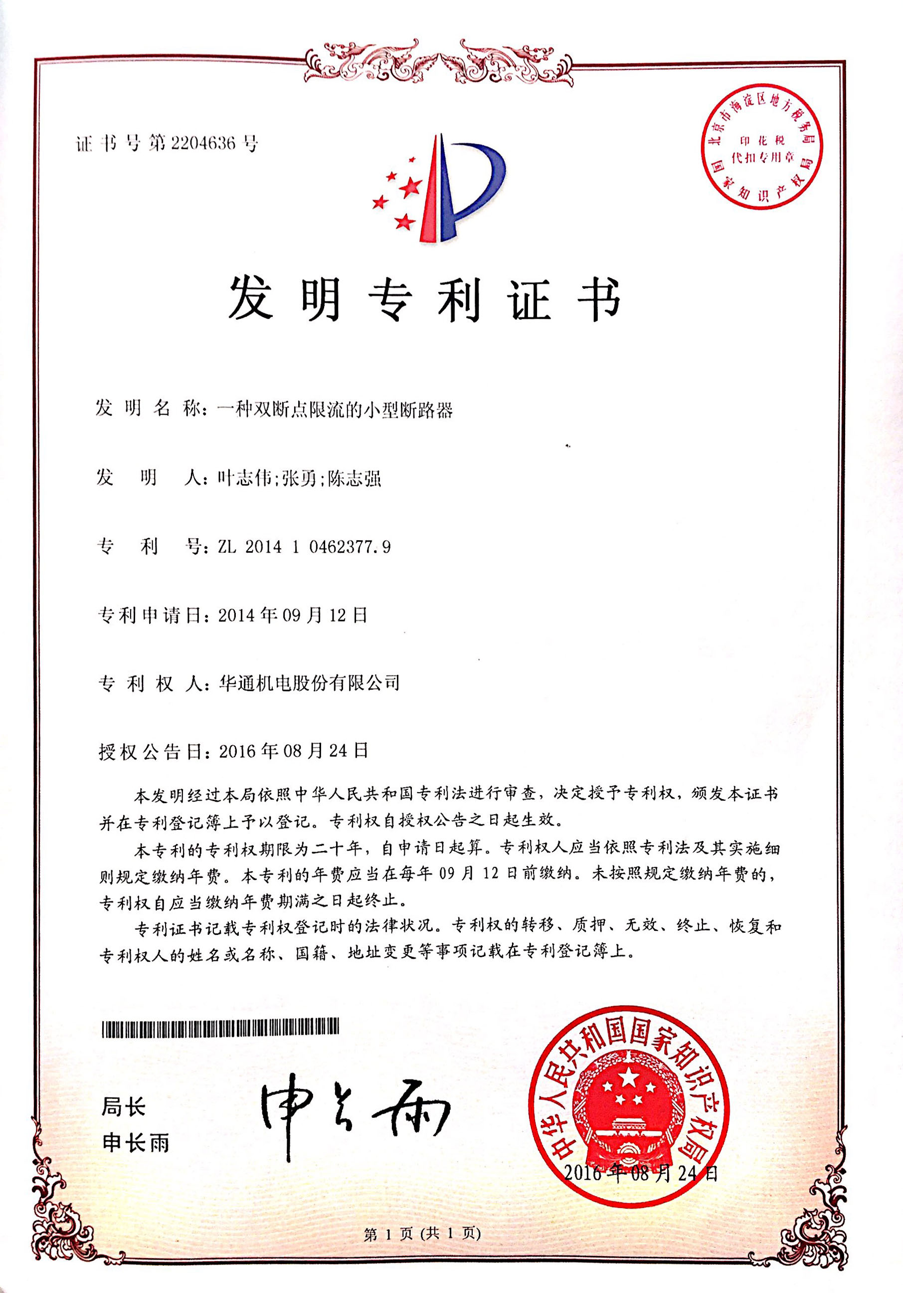 發(fā)明專利:一種雙斷點(diǎn)限流的小型斷路器